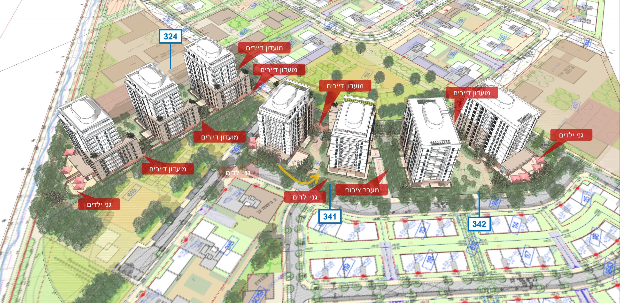 מתחם מגורים משולב של דירות להשכרה, 6 גני ילדים ושטחים פתוחים, בחלקה המערבי של שכונת הרובע הבינלאומי.